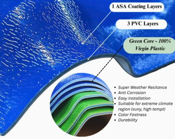 - Top Surface Layer: Coated with an ASA film, this layer is the key to the product’s exceptional longevity and color retention. ASA material delivers outstanding UV resistance, weather durability, and corrosion protection, ensuring long-term performance even in harsh environments.